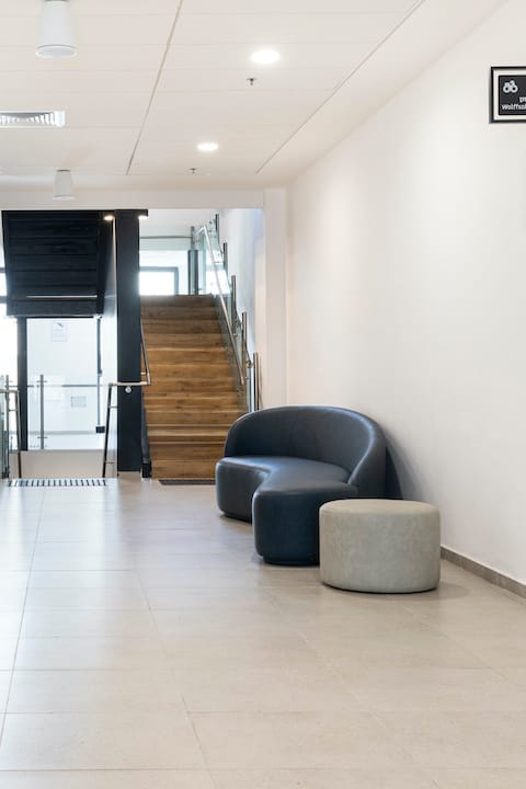 הרעיון המנחה לעיצוב הפנים במתחם קאנטרי העלייה החדש היה להמשיך את הקו האדריכלי של המבנה. אדריכלית הפנים אפרת סלע בחרה בקו מודרני קליל המכבד את הסגנון הבינלאומי של המבנה ההיסטורי, תוך חשיבה על התאמה לקהל היעד – אוכלוסייה צעירה ומגוונת המתגוררת באזור. ניתן דגש על עיצוב נקי והתכתבות עם המבנה שבאו לידי ביטוי בתיבות המוסחות אחת מהשנייה והרפפות הלבנות שבחיפוי הקיר החיצוני. בחירת הצבעוניות באה כהמשך טבעי לאופי המבנה הלבן: נגיעות של שחור ושל טורקיז – הגוון הנבחר ללוגו הקאנטרי. בחירת הריהוט נעשתה בשיתוף פעולה פורה עם חברת פיטרו. לאזורי המעבר בקומות הסטודיו נבחר ריהוט בצורות אמורפיות וקווים מעגולים בצבעים אפורים-כחולים שקטים, ליצירת פינות ישיבה רכות ומזמינות. לעמדות העבודה המשרדיות נבחר ריהוט לבן. לחלל מתחם העבודה השיתופי, הנבדל בתפקודו משאר חדרי הסטודיו, הותאמה פלטת צבעים קלילה וצעירה. חיפוי סרגלי העץ הצבעוני, כהמשך לקו העיצובי במתחם כולו, הותאם לצבעוניות הריהוט וחיזק את הייחודיות שאופיינה לחלל השיתופי.