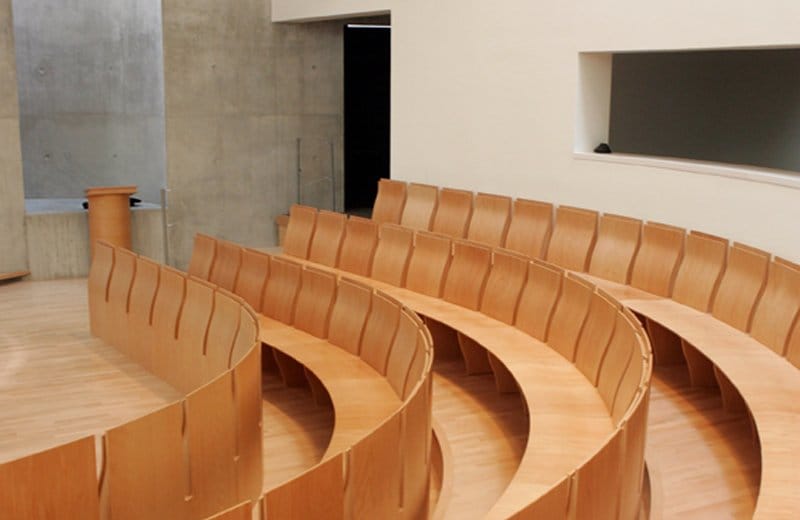 עיצובו הכללי של קומפלקס בית הכנסת ב”יד ושם” הוא שהכתיב את תכנון מערך הישיבה במקום. בהתאם, המושבים תוכננו בשיתוף האדריכל הנודע משה ספדיה וחברת פיטרו. לאחר מכן המערך יוצר בטכניקת כבישת עץ שכבתית תלת ממדית על ידי נגריית האמן של החברה. שלום בלכמן, מנכ”ל פיטרו, סיפר כך על הפרויקט: ”בתהליך הייצור חווינו התעלות מקצועית דרך מוצר המסמל קדושה וגאווה, והפכנו לחלק מתוך המורשת היהודית”.