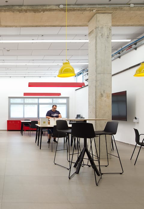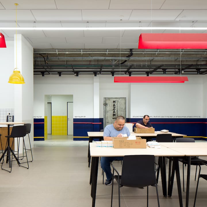 מרכז תעסוקה לבעלי מוגבלויות של עמותת גוונים בשדרות הוא מקום שבאים לעבוד בו, אך לא רק. לכל אדם יש את הצבע, הצליל והחלום שלו – זהו האני מאמין של העמותה, שחרטה על דגלה להיות גורם תומך ומלווה המאפשר לכל אדם עם מגבלה לחיות חיים מלאי סיפוק ומימוש בקהילה, כראות עיניו ובדרכו. האג’נדה הזו הוטמעה בפרויקט עיצוב המרכז על ידי מעצבת הפנים יעלה צורף. לכל איזור בפרויקט נבחרו גוונים עזים של אדום, צהוב, ורוד וכחול כאלגוריה לגוונים השונים החברה. עבודות האמנות ששולבו בפרויקט – שירים, עבודות רקמה ויצירות בטכניקות שונות ומגוונות – נוצרו כולן על ידי באי המרכז, שהשתתפו גם בבחירת הריהוט: הם הגדירו את הצרכים החשובים להם והגיעו לבחירות הריהוט יחד עם המעצבת כחלק מהשאיפה שעיצוב המקום ישרת אותם באופן מיטבי.