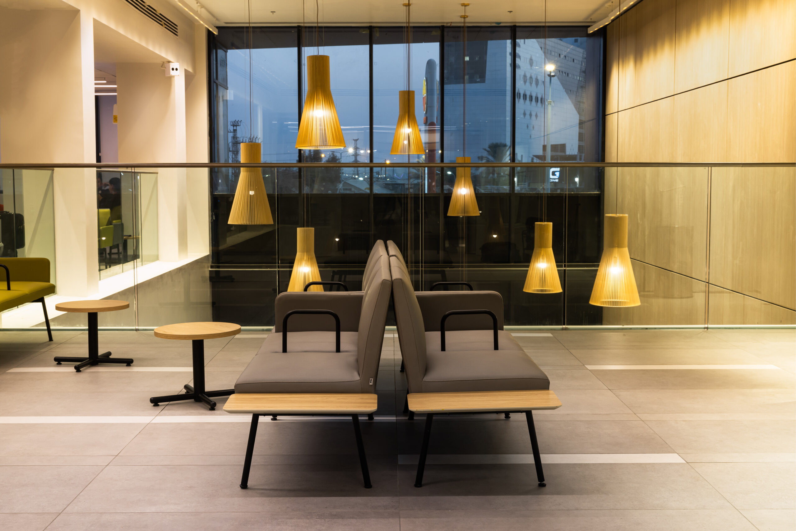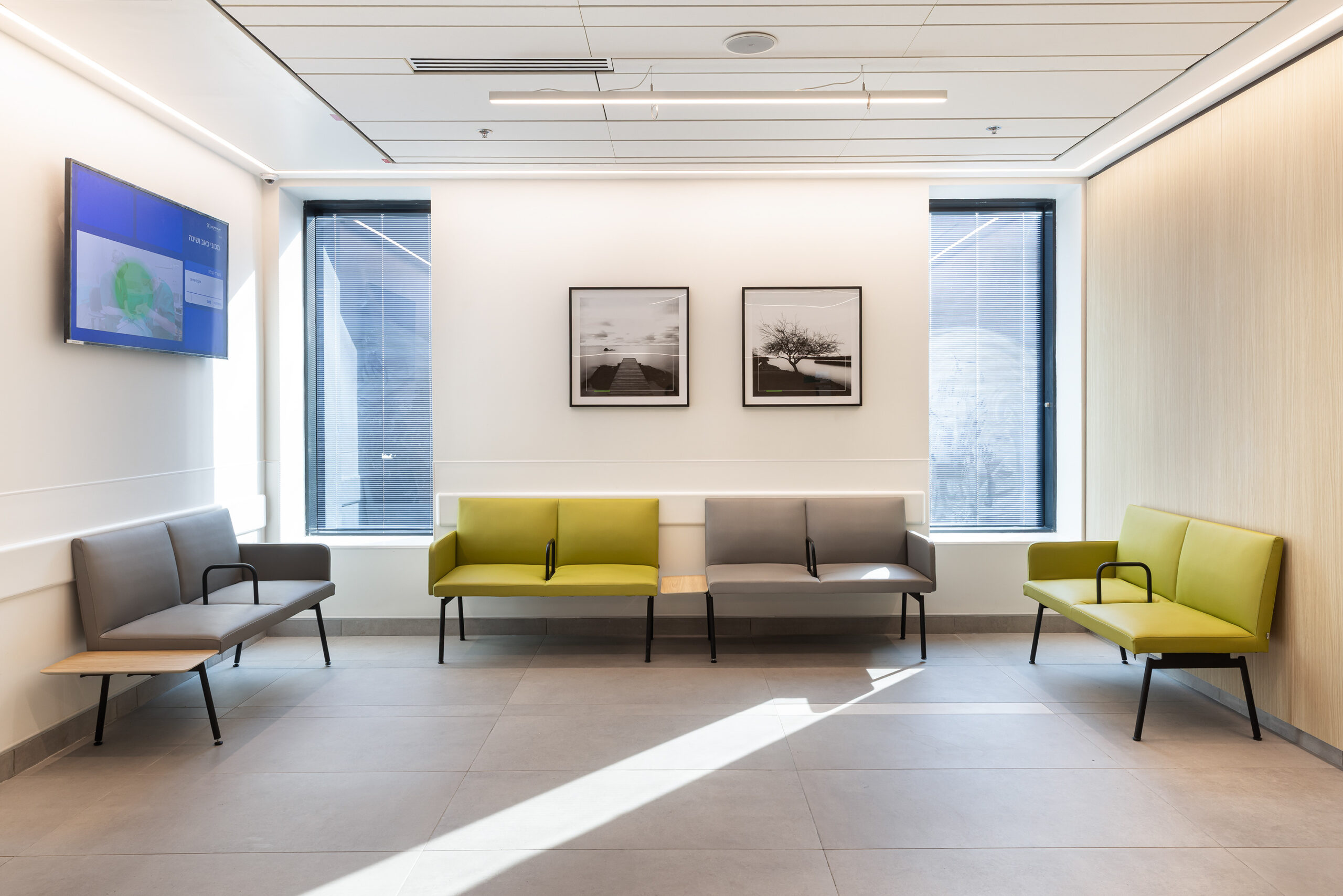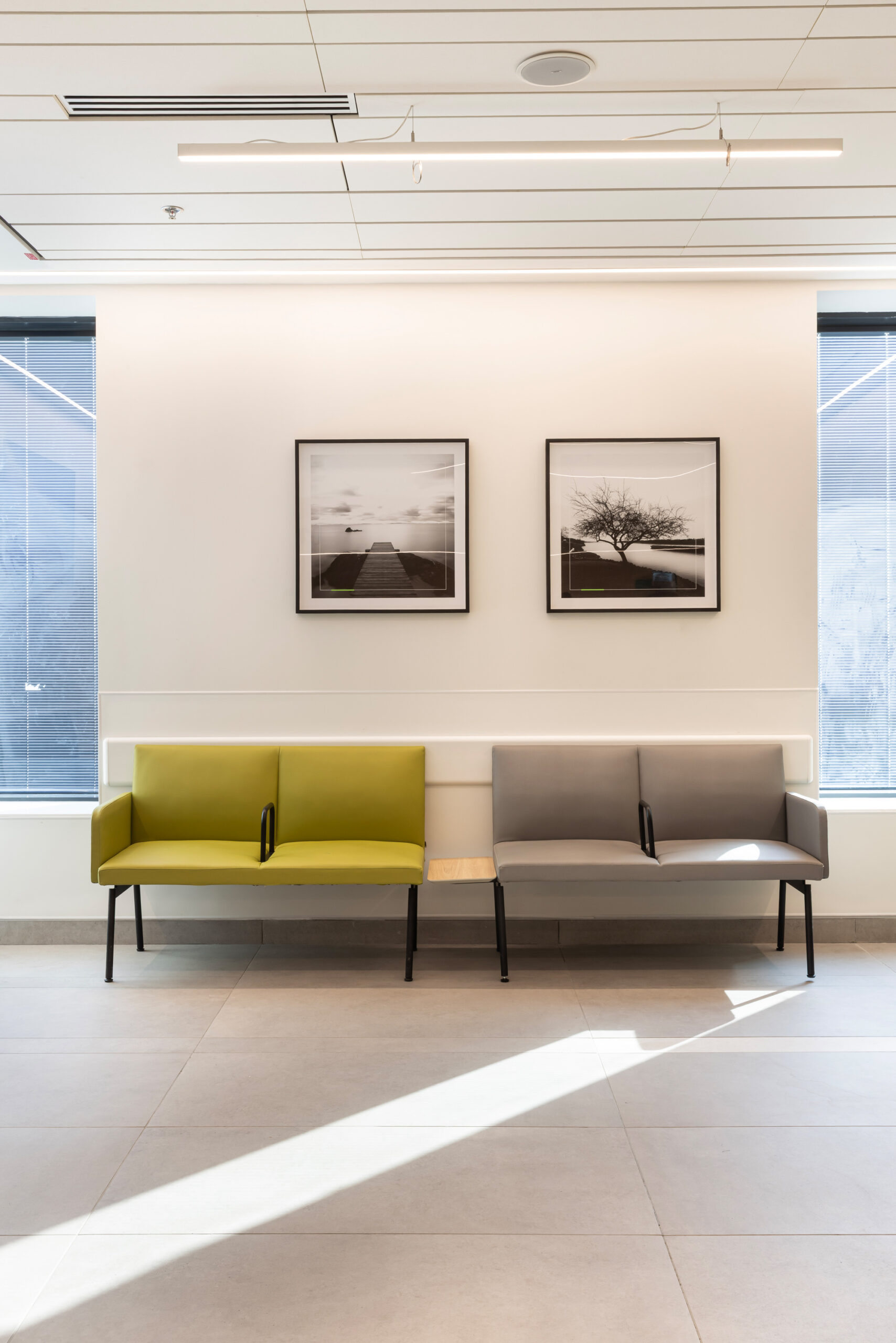 כל חלל המתנה הותאם כך שיאפשר שהייה ממושכת ונוחה עם מגוון סוגי ישיבה המעניקים חוויה נעימה ומרגיעה.