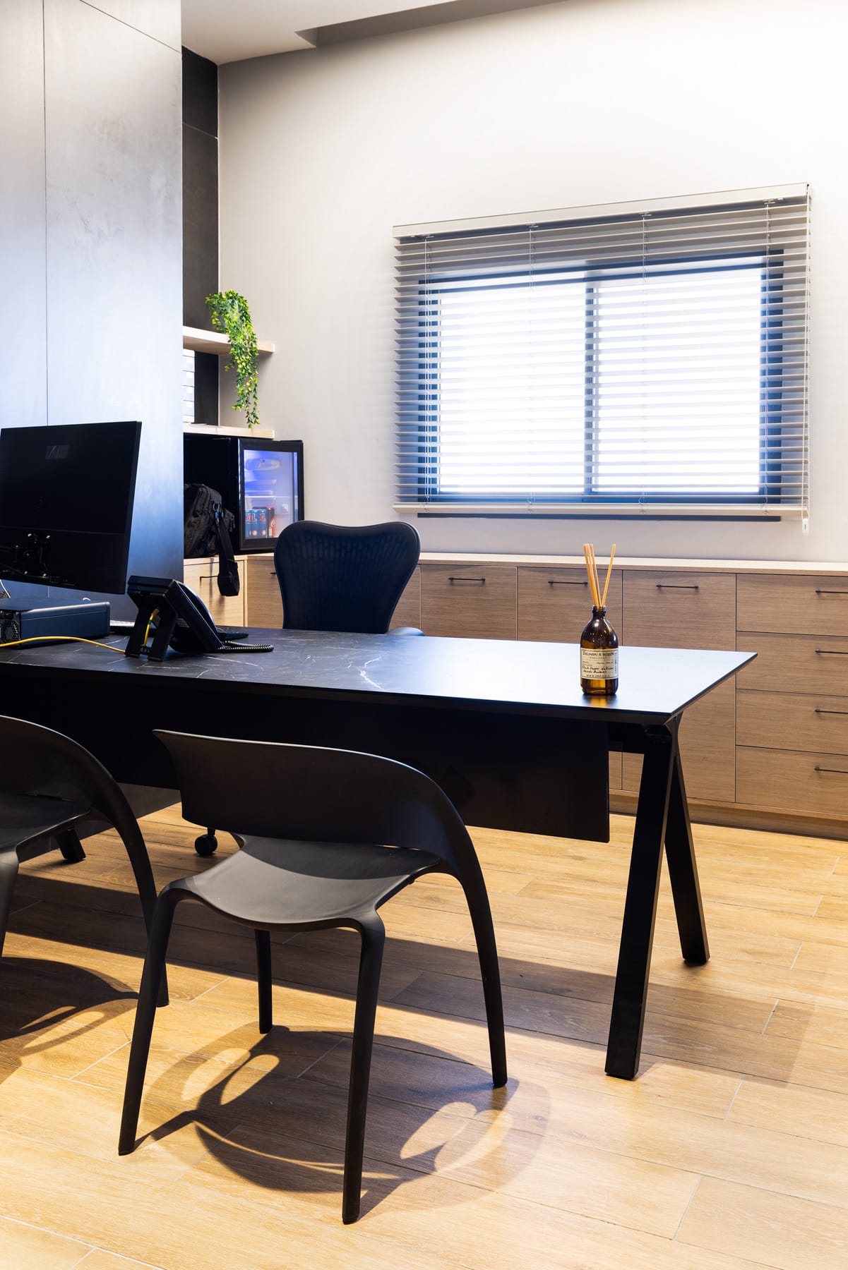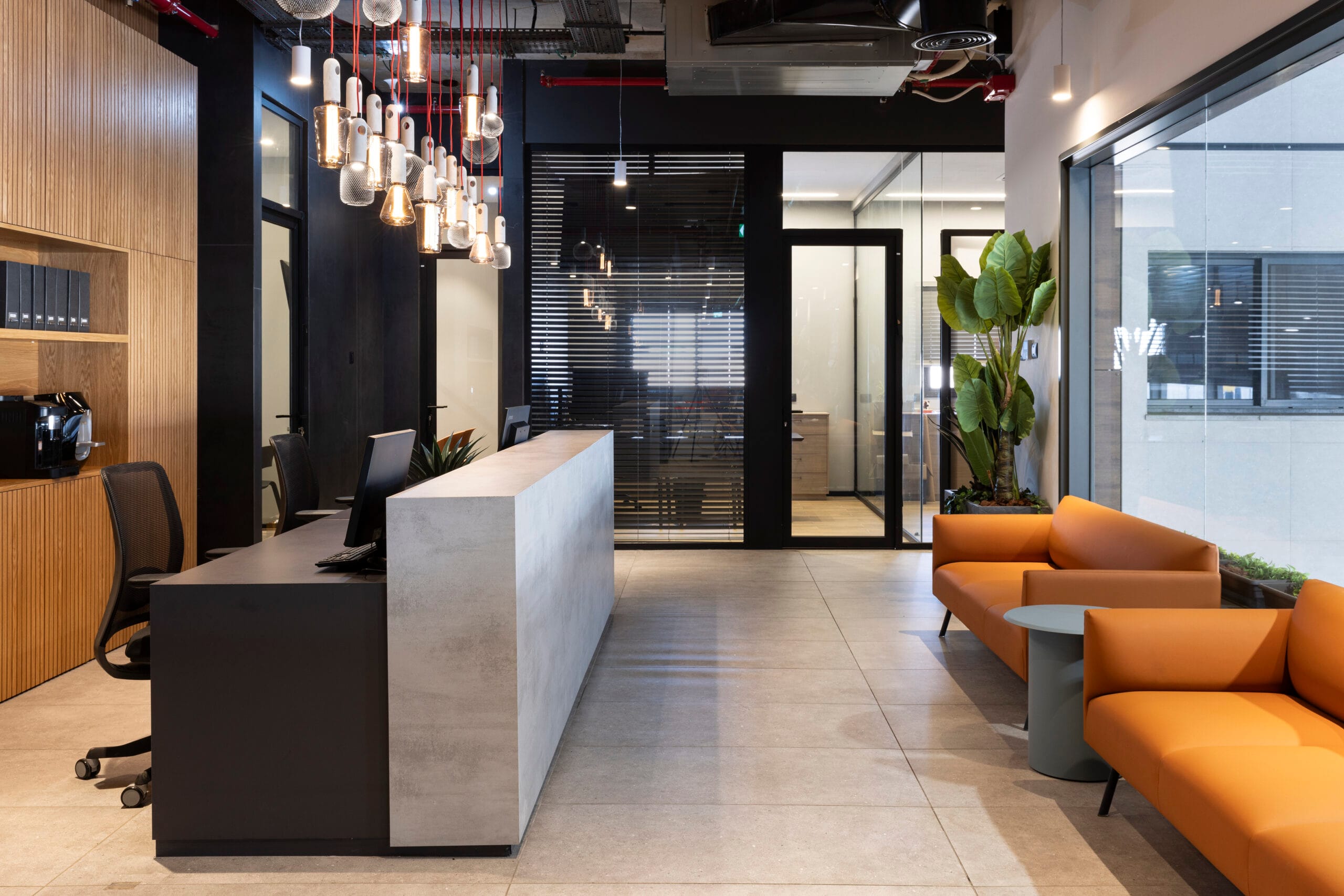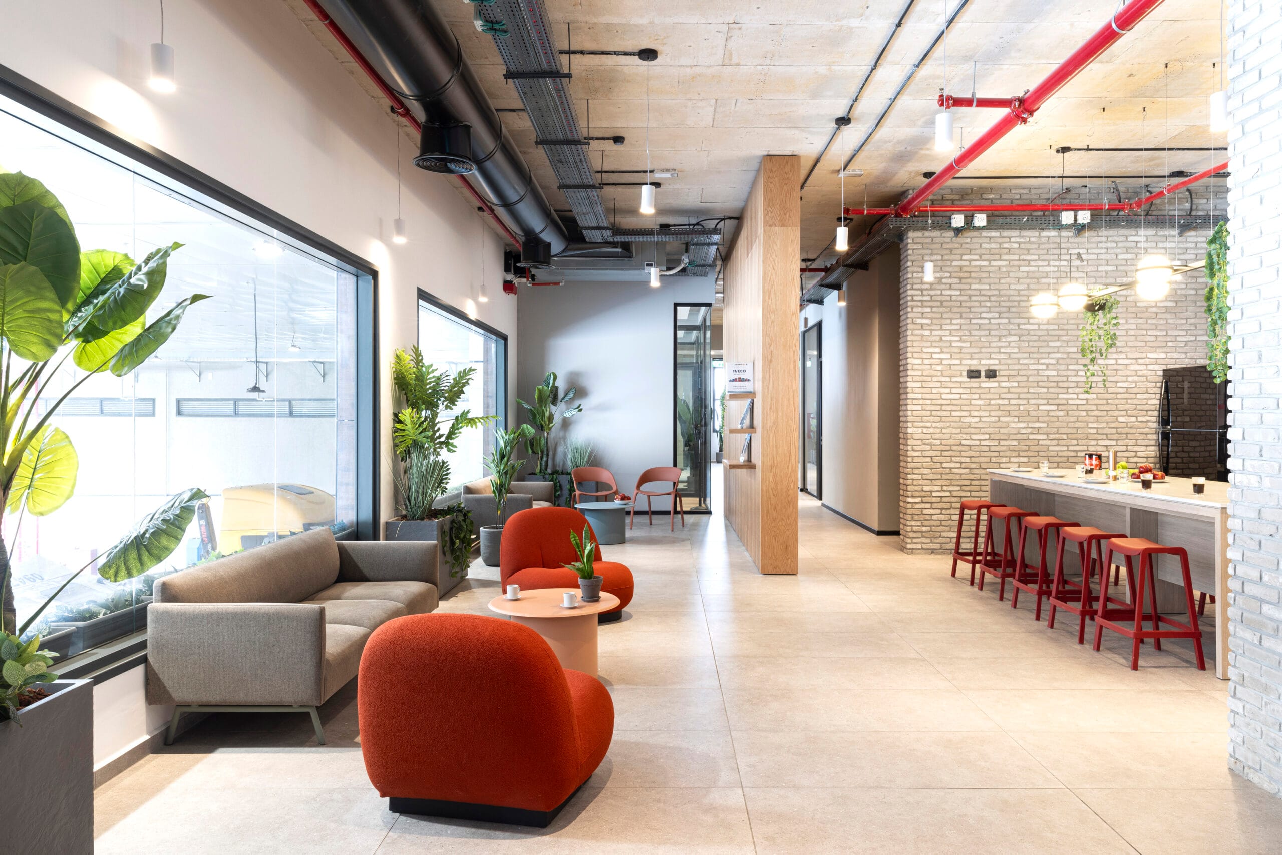 בחירות הריהוט במשרדי גור עוז מהדהדות את הדנ”א של החברה – שירותי ההובלות, הכבישים והדרך – בעזרת פרשנות עיצובית מרעננת שמאזנת בין טכני לרך, בין תעשייתי לאישי.