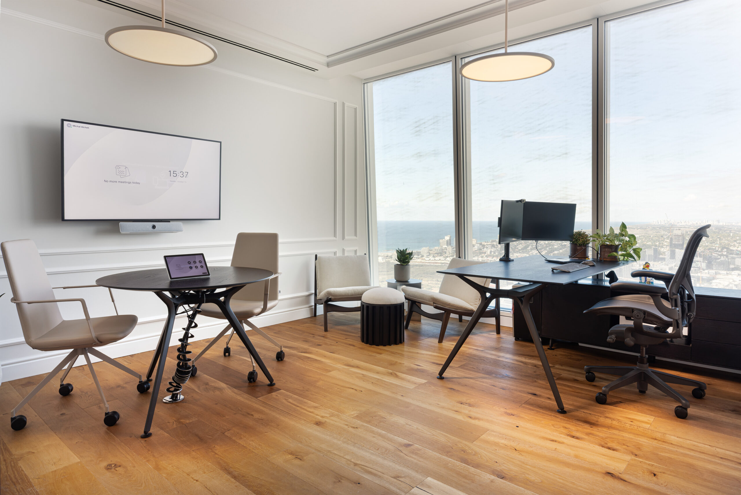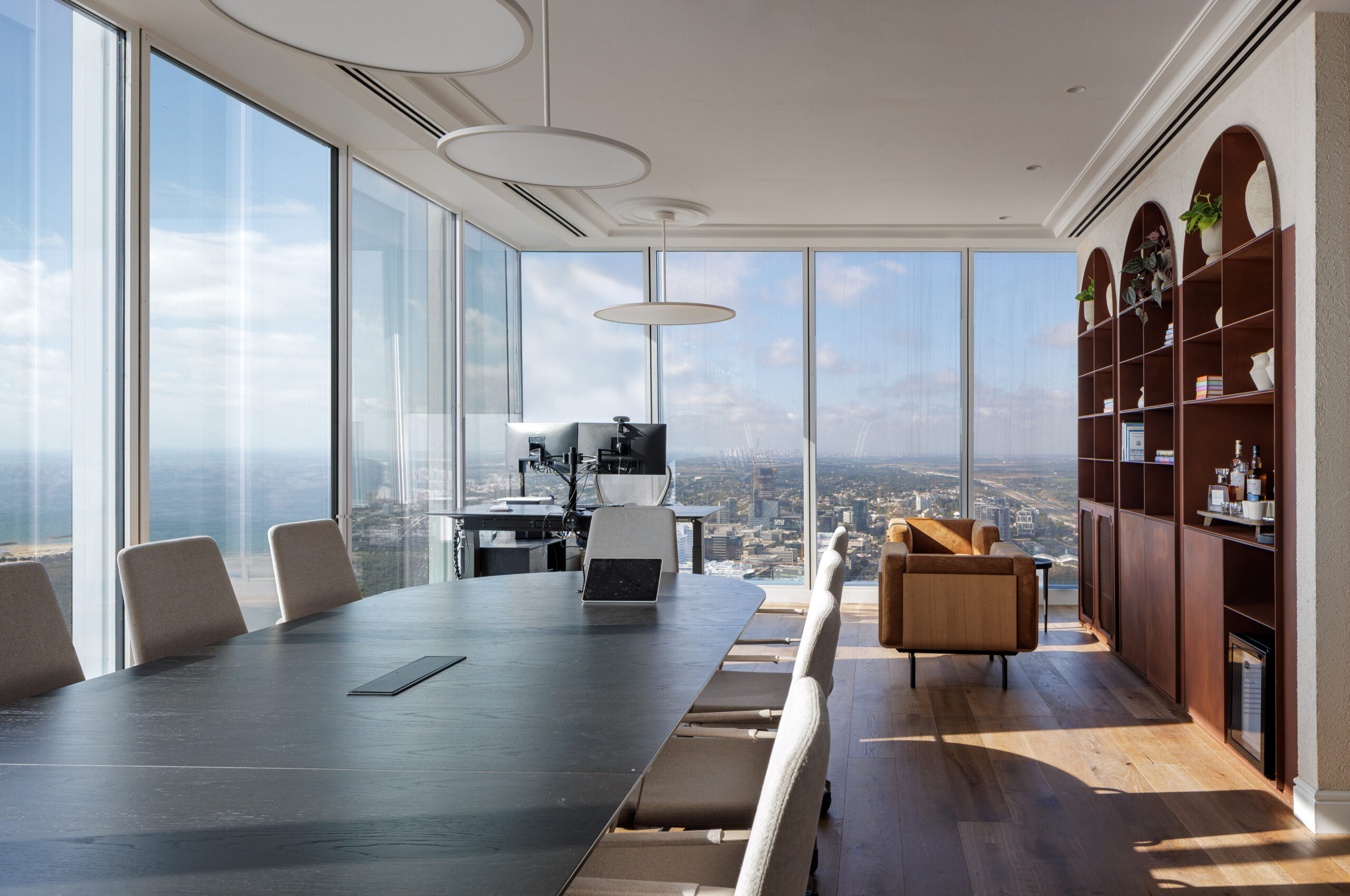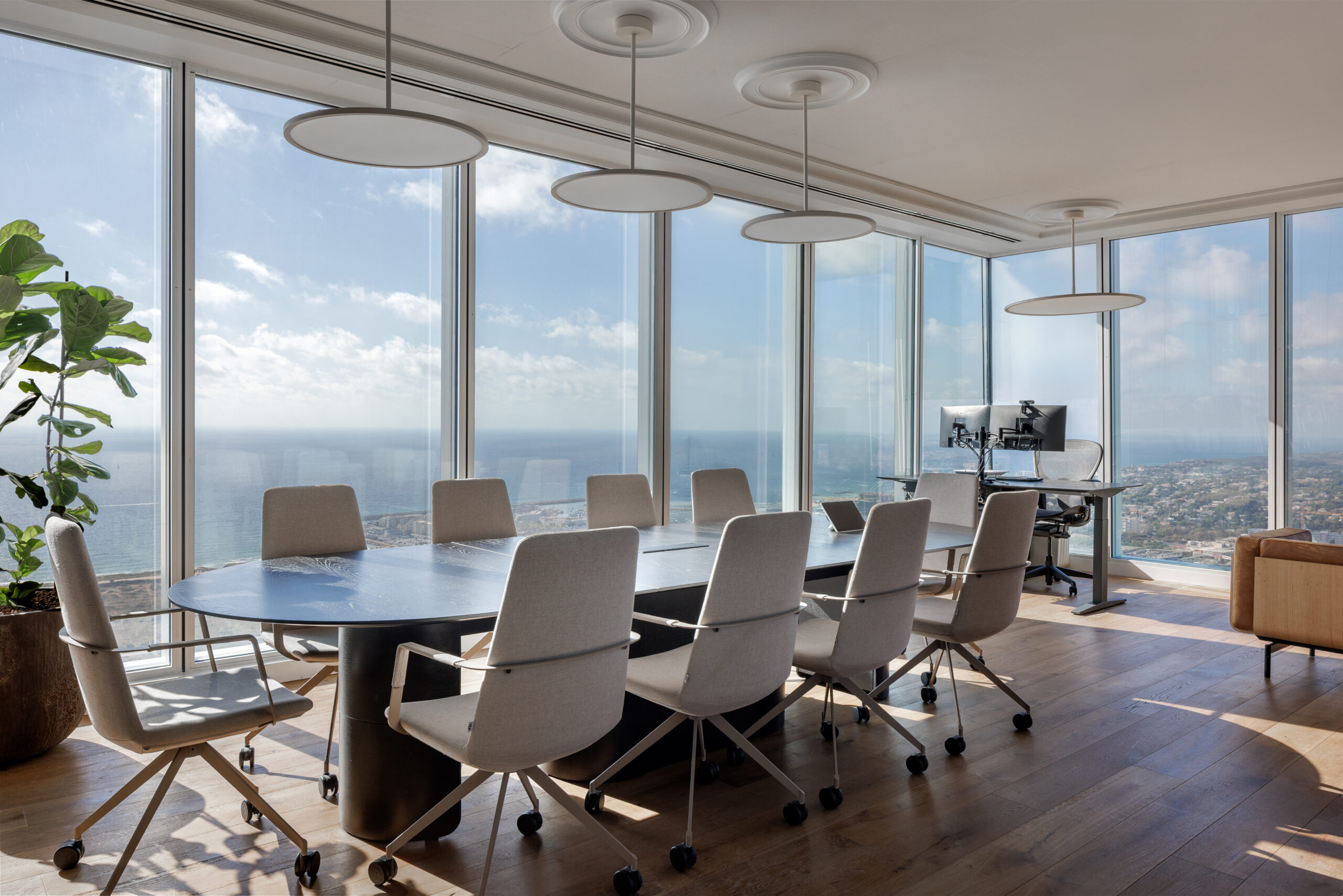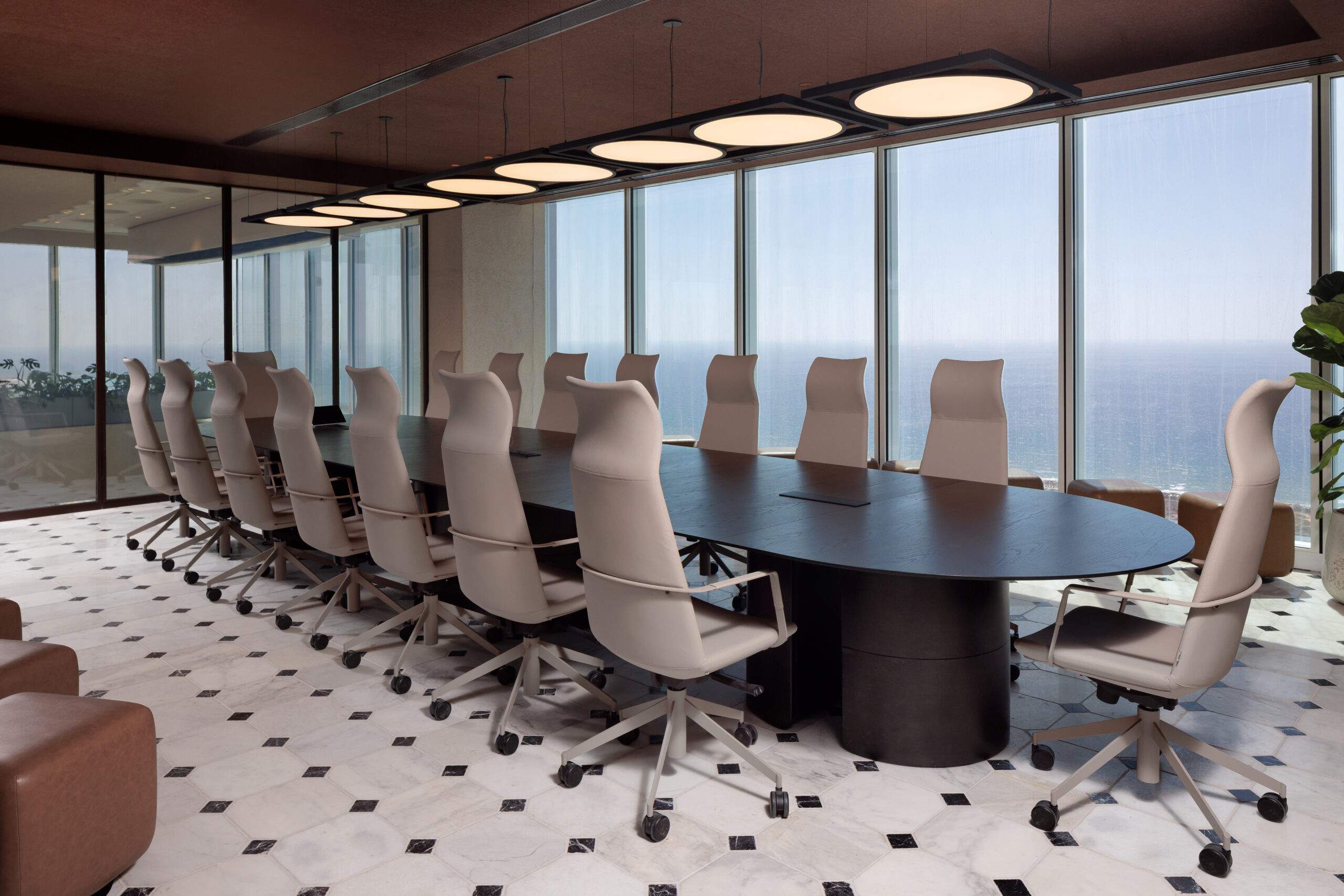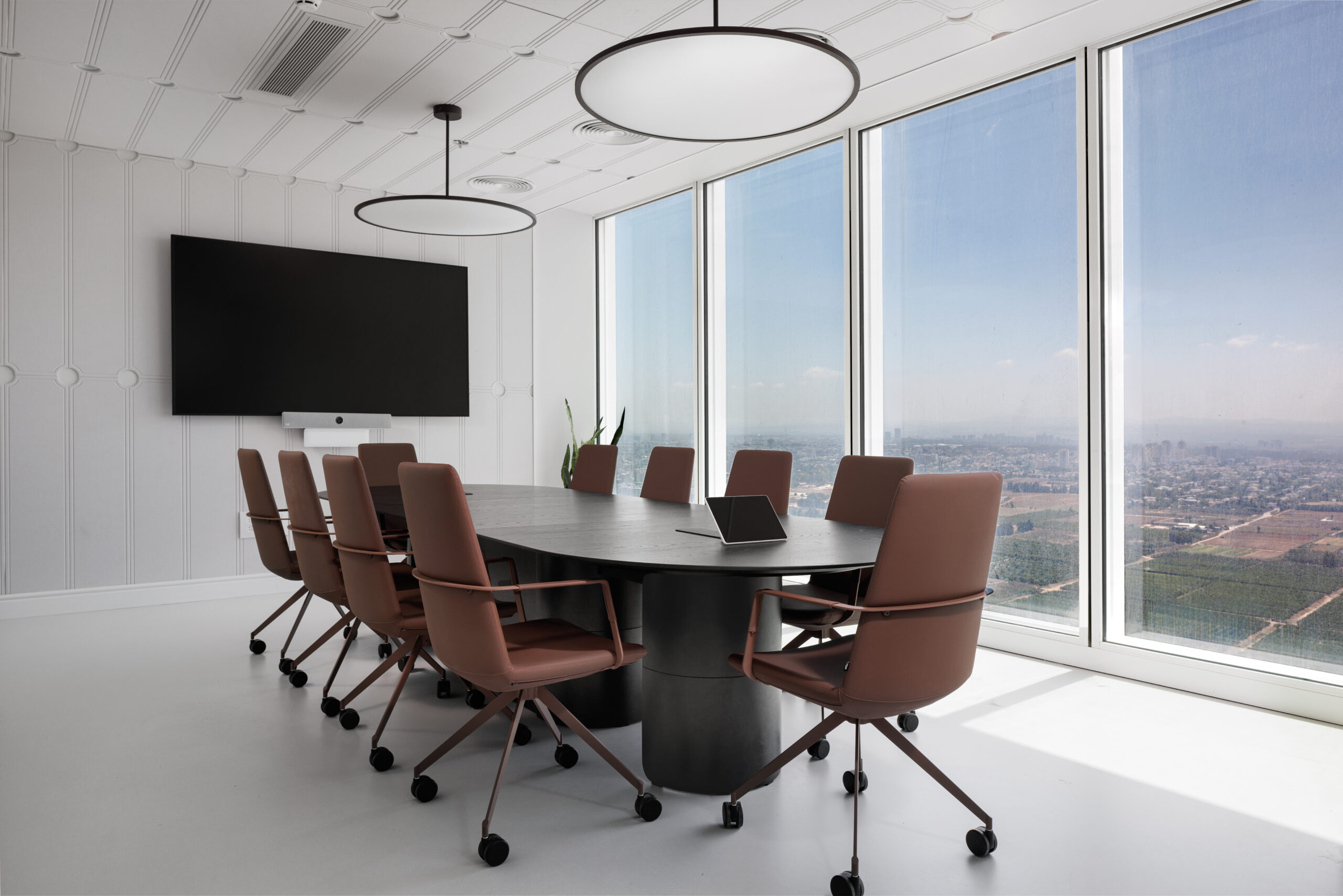 בחדרי הישיבות יוצרו שולחנות מדגם MOON במגוון רחב של מידות המותאמים לצרכים המדויקים של הארגון.