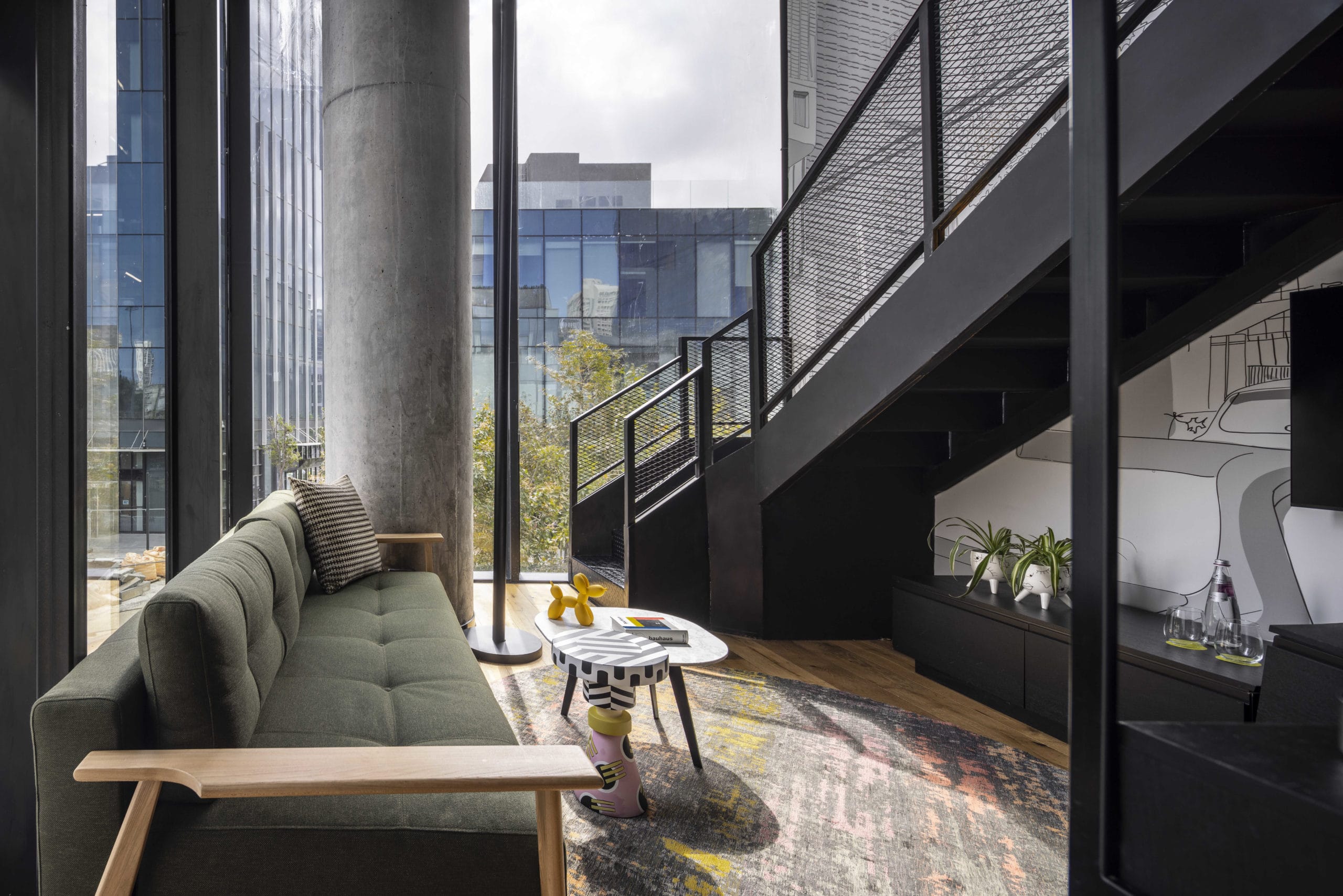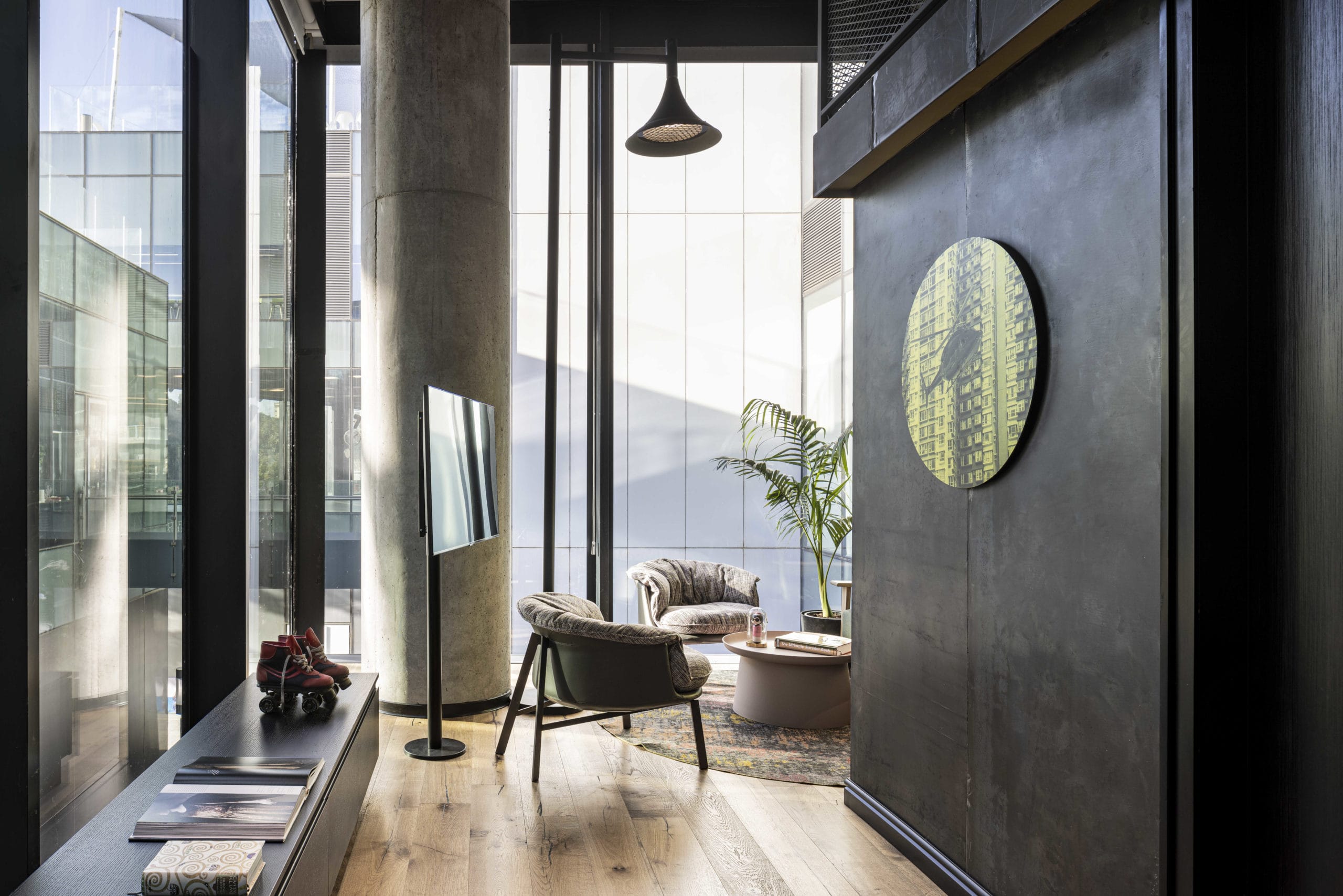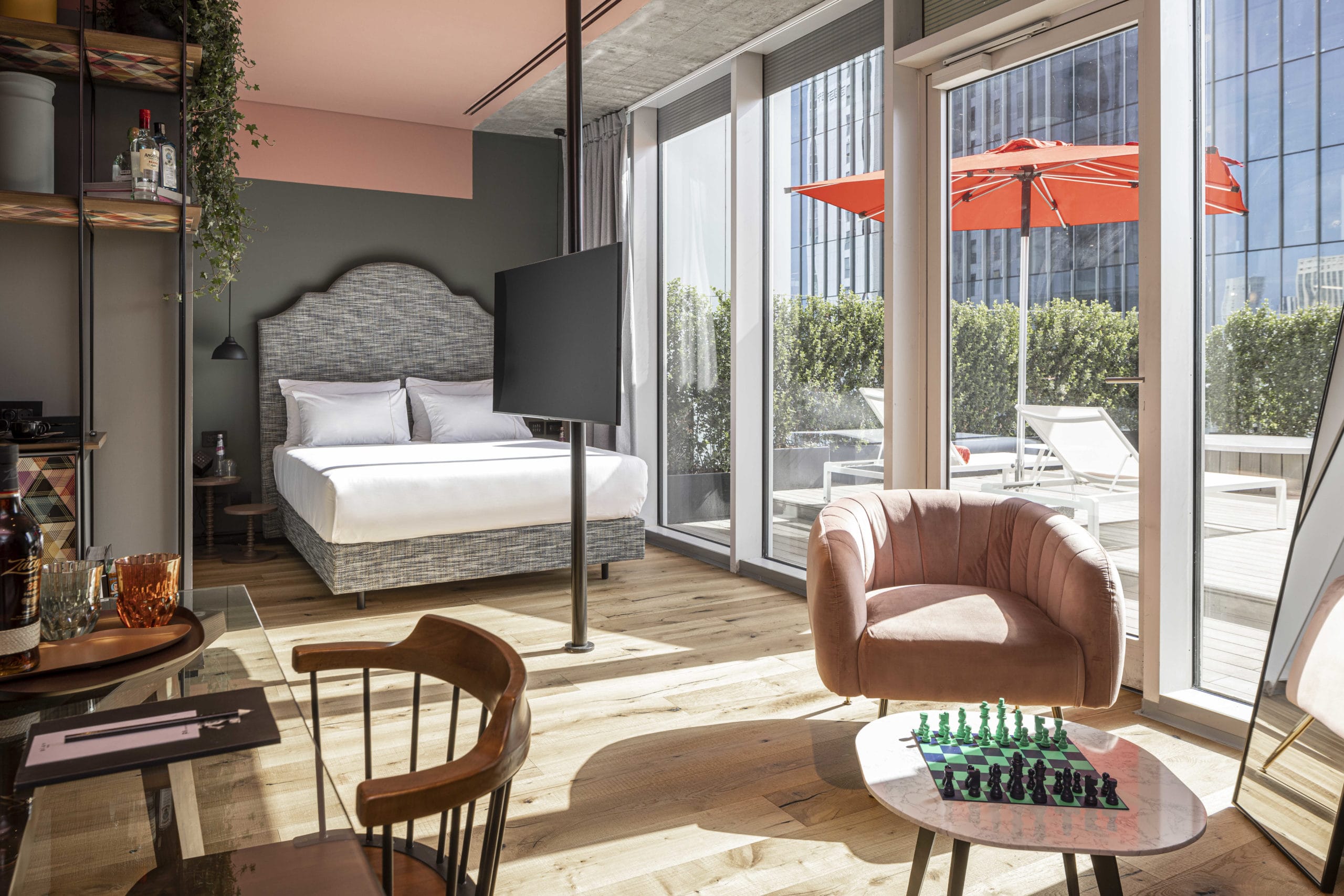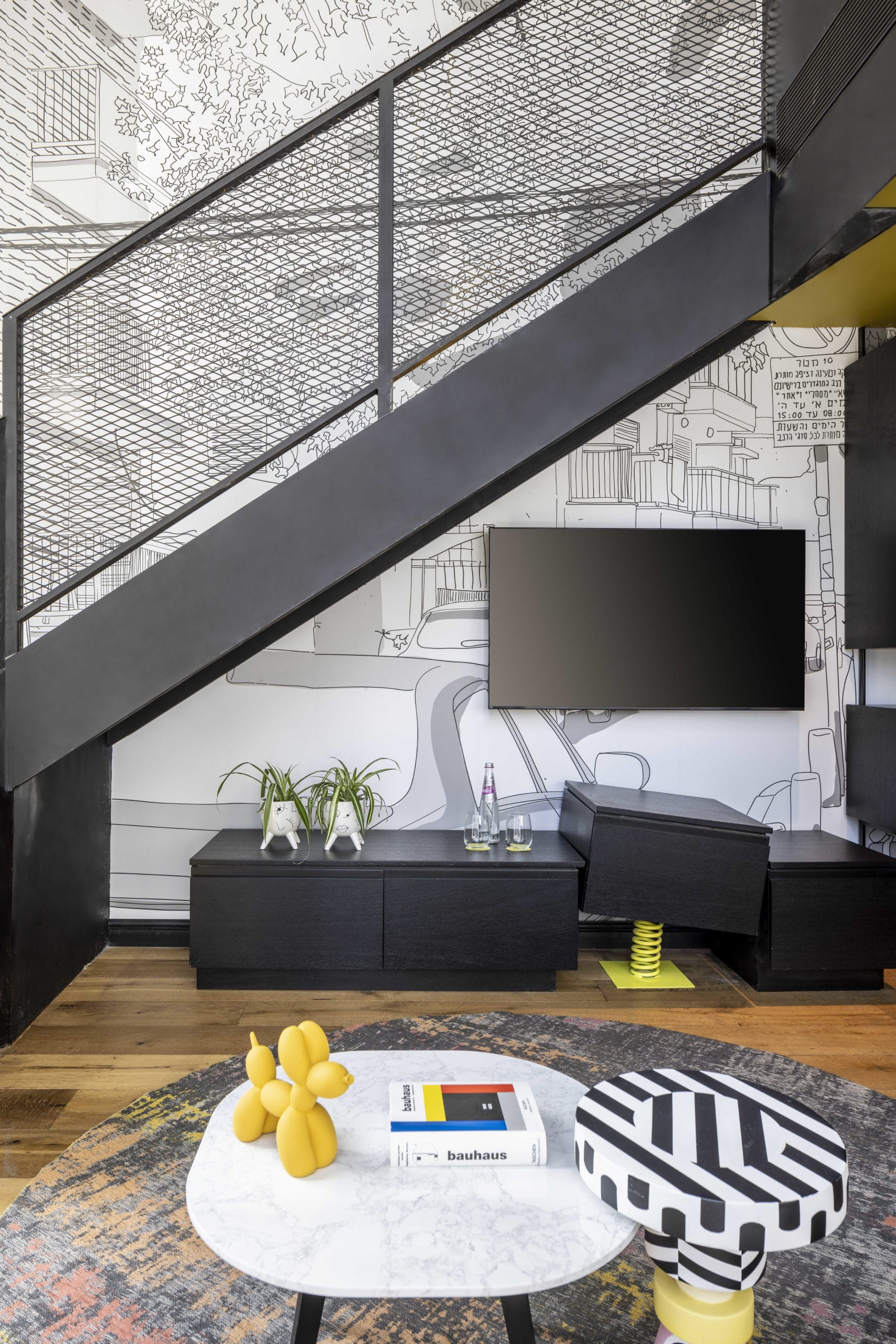 המלון ממוקם בלב ליבה הפועם של העיר תל אביב ומזמין את האורחים להנות ממגוון האטרקציות שבסביבה, בסוף כל יום האורחים יכולים לשוב ולנוח בחדרי האירוח הייחודיים. הריהוט הקבוע והנגרות בחדרים נעשו בתכנון בהתאמה אישית וייצור מיוחד לפי מידות ע״י פיטרו, החל מיחידות האחסון השונות, הארונות, שידות צד, המיני בר ועד המיטה. פלטת החומרים שנבחרה משלבת בין חומרים תעשייתיים עם צבעוניות חזקה והדפסים מדליקים ונועזים.
