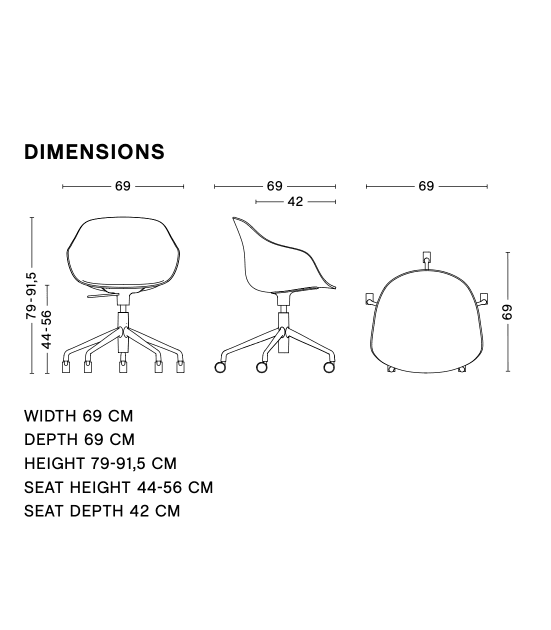 כיסא עבודה מבית המותג HAY המשתייך לקולקטיב המותגים MillerKnoll. בעל גב גבוה ומושב עמוק לנוחות אופטימלית, בסיס עם גלגלים המסתובב ב-360 מעלות וידית להתאמת גובה המושב. המושב מגיע במגוון צבעים כולל אופציה לריפוד, הבסיס זמין בצבע שחור או אלומיניום טבעי. פריט אידיאלי עבור חדרי ישיבות, חללי עבודה משותפים וסביבות משרדיות. סדרת הכיסאות המפורסמת AAC כוללת עשרות וריאציות של כיסאות בעיצובו של Hee Weeling לשימושים ורסטילים בסביבות שונות.