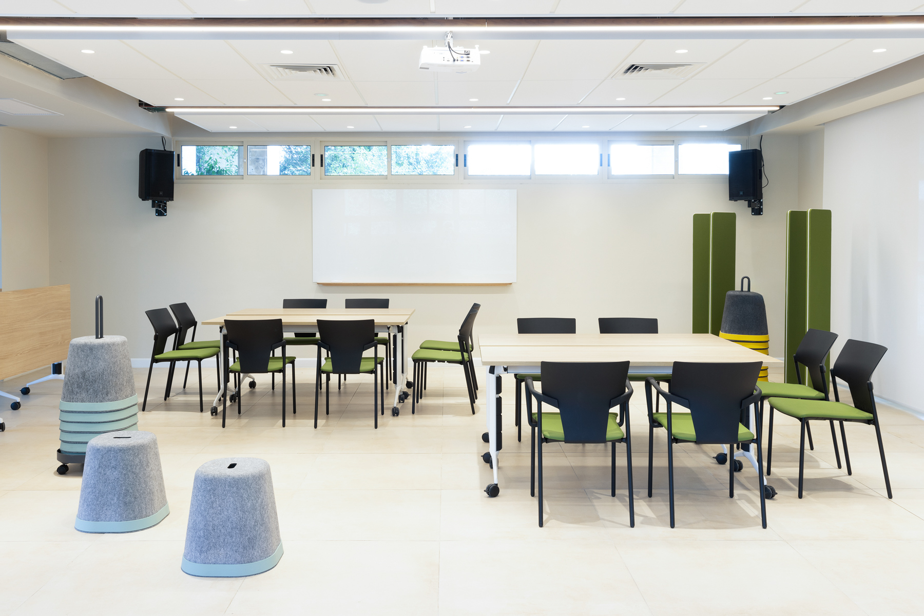הכסא בחדר המורים של תיכון עודד קדימה צורן (עיצוב: ליאור בן שטרית אדריכלים, צילום: עמית גושר). -