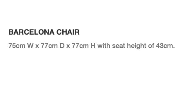 Barcelona היא אייקון עיצוב אמיתי, מבית אדריכל הבאוהאוס המעוטר לודוויג מיס ואן דה רוהה. הכורסא מיוצרת על ידי חברת Knoll וממזגת באופן נפלא בין עיצוב מודרני מתוחכם לייצור קפדני ואיכותי ביותר. היא עשויה מגוף מתכת בגימור מראה עם גוף מרופד בגימור עור בצבעים שונים.