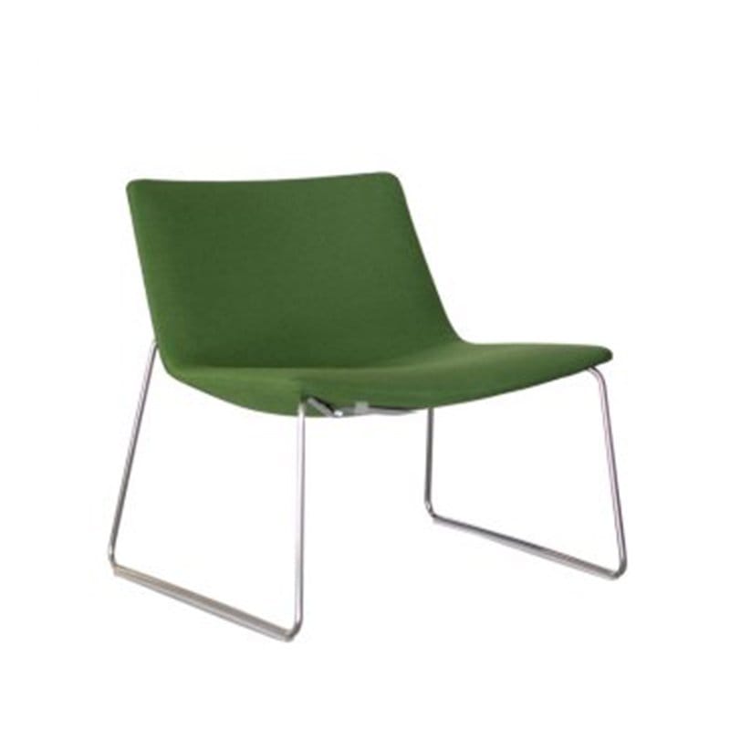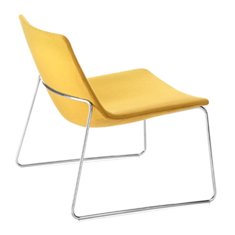 כורסא מעוצבת עם בסיס הנראה כמו מגלשה. את שלד הפוליאוריתן של הכורסא ניתן לרפד בעור או בד לבחירה.