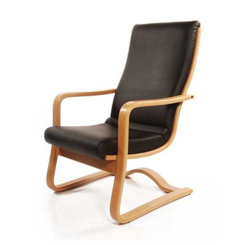 כורסא נוחה המצטיינת בקו ארגונומי לשמירת יציבות הישיבה במבנה חזק, מעץ בוק בכבישה צורנית.