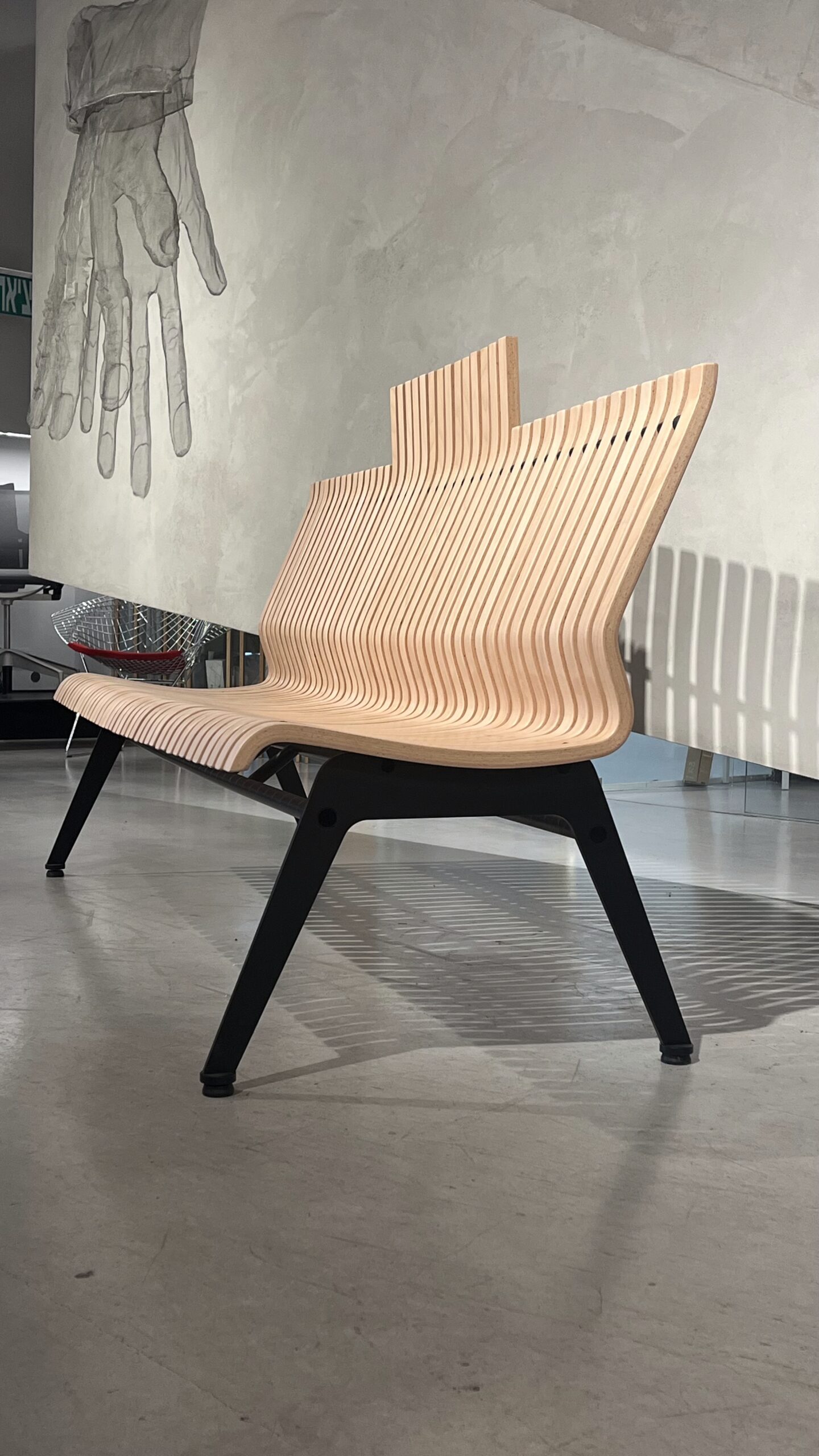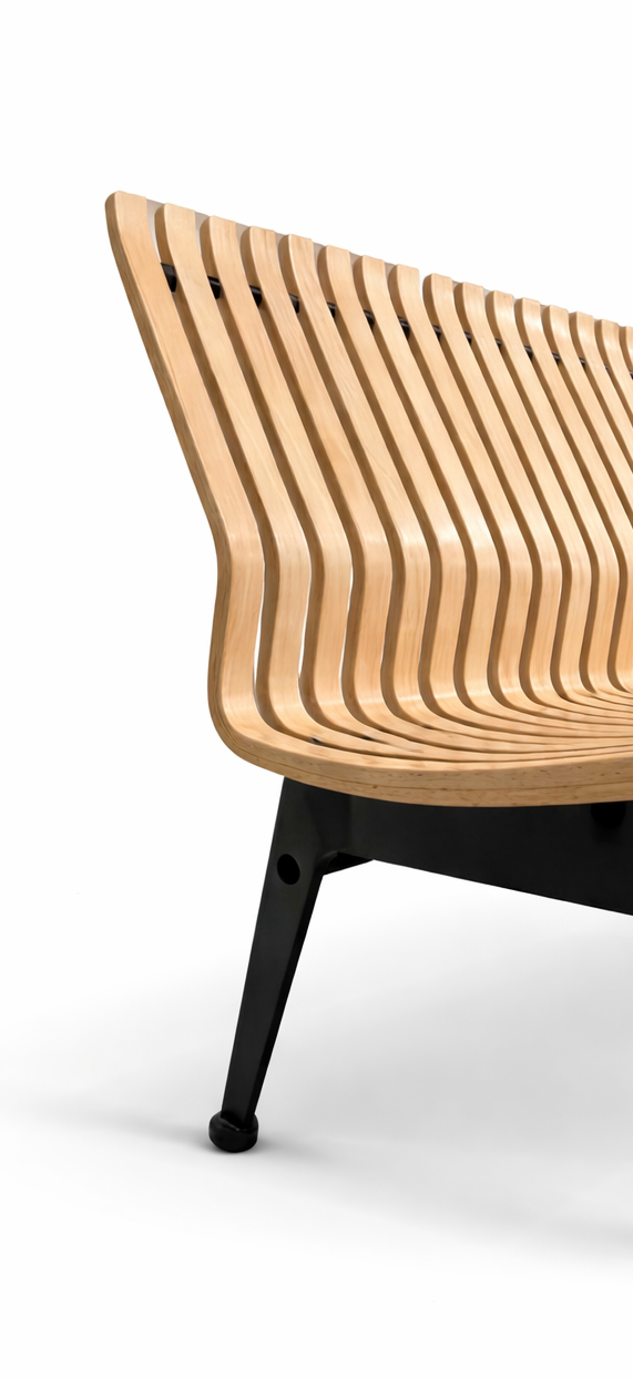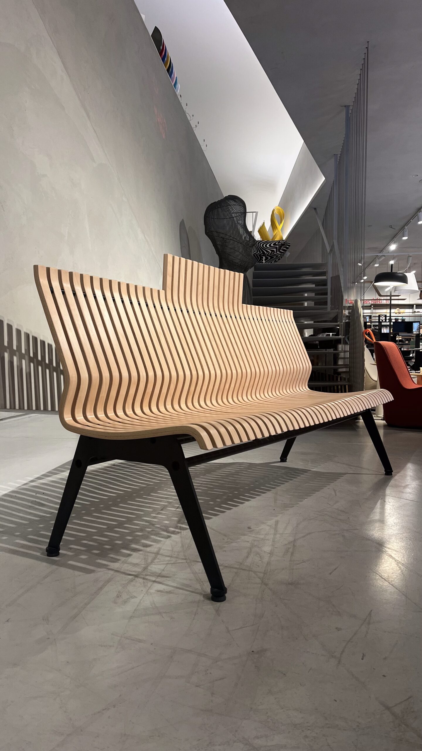 ספסל FIGURA עשוי עץ בשילוב רגלי מתכת יציבות, מתאים למרחבים ציבוריים – מהיכלים ואולמות תצוגה ועד מוזיאונים וחללי תרבות. הקווים ברורים, הפרופורציות מאוזנות, והנראות משתלבת בטבעיות באדריכלות שמסביב.