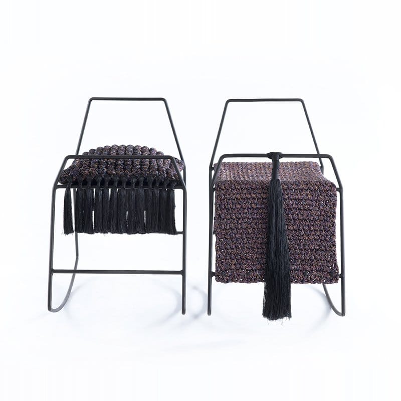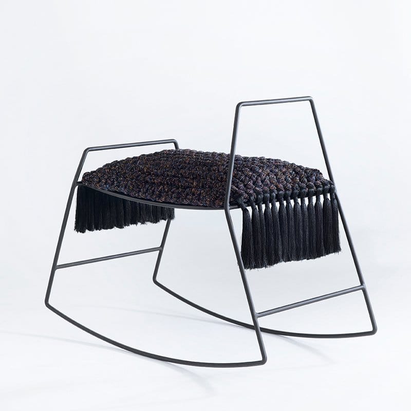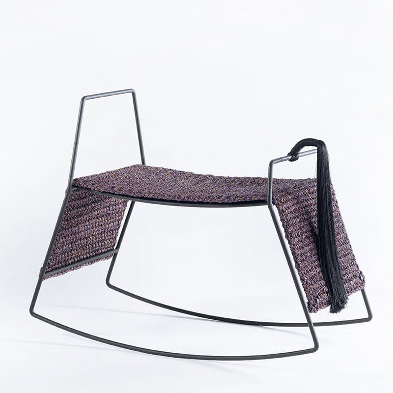 הנדנדה מקבלת את השראתה מסוסי הנדנדה הקלאסיים. הנדנדה עשויה ממסגרת ברזל שחורה (היכולה לשאת עומס של עד 100 ק"ג). עליה מונחת כרית מושב סרוגה בעבודת יד מחוטי כותנה ופוליאסטר בשילוב מורכב של גוונים שונים של שחור עם נגיעות פוקסיה, זהב וכחול. הכרית מדמה אוכף והפרנזים הנופלים ממנה מאזכרים את רעמת הסוס והזנב שלו. מידות: 75*40 / H: 60 cm