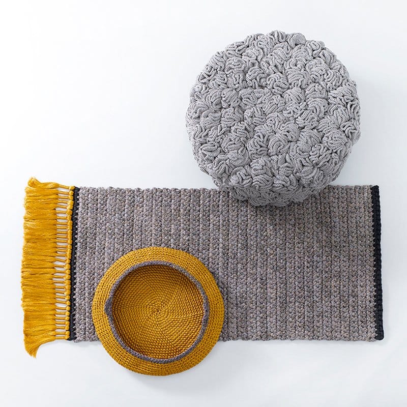 השטיחים של iota הם צבעוניים ונעימים ומגיעים במספר גדלים, צבעים וטקסטורות ועשויים בסריגה ידנית. כל שטיח יחיד במינו ואוצר בתוכו את מגע ידה של האורגת כמו גם שילובי חוטים הייחודיים לו.