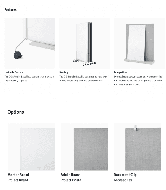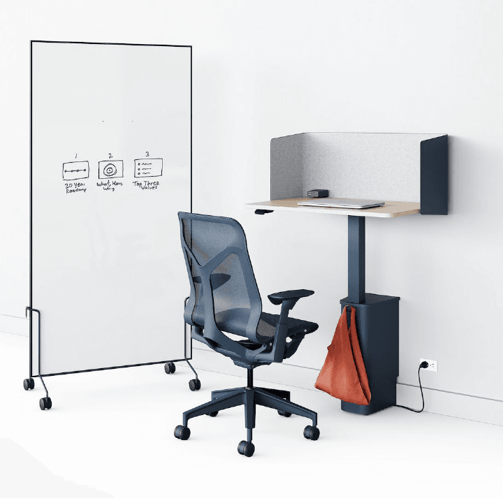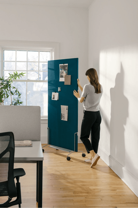 לוח נייד מבית המותג הרמן מילר, מאפשר שיתוף פעולה יעיל עבור צוותים בסביבת העבודה. ניתן לבחור בין לוח בד ללוח מחיק עליהם ניתן לכתוב, להדביק או לנעוץ השראות ורפרנסים. הבסיס הנייד ניתן לנעילה ועיצובו מאפשר אחסון יעיל של כמה לוחות באופן שאינו מפריע בחלל ומשתלב בטבעיות.