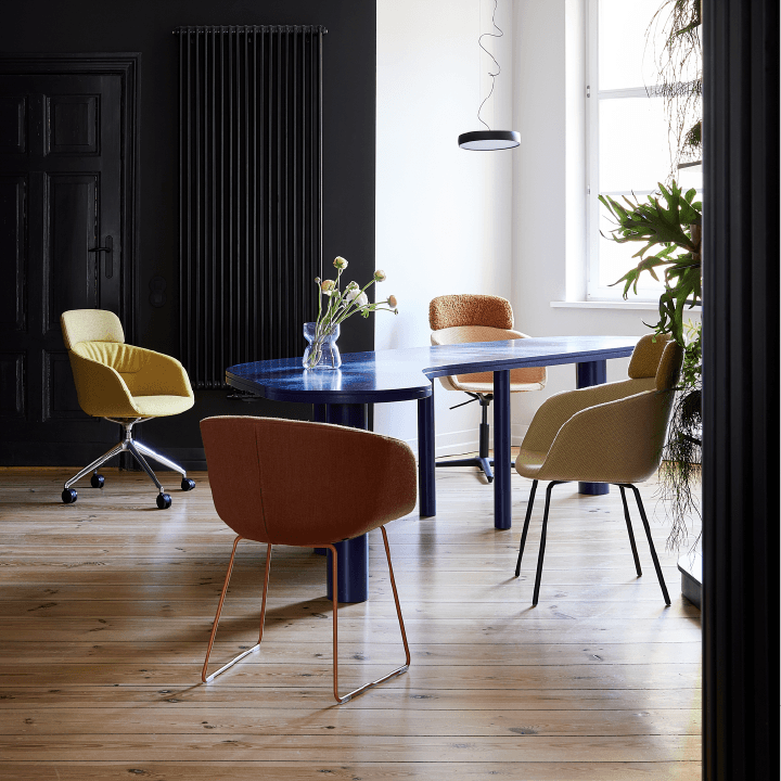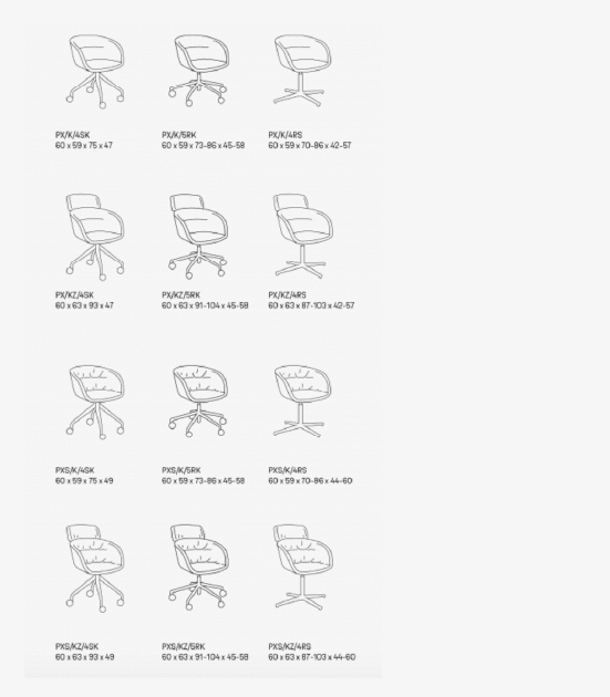 סדרת כיסאות וכורסאות רב תכליתיים לסביבות ציבוריות ולמרחבי עבודה בעיצוב אלגנטי וגימור מוקפד. בסדרה 8 בסיסים שונים ושתי גרסאות של משענות גב. משענת הגב הגבוהה מגדילה את שטח המגע עם הגוף, משפרת את הנוחות ומאפשרת משחקי צבע וטקסטורה. קטלוג עשיר של בדי ריפוד ועורות מאפשרים אינסוף אופציות לעיצוב; להתאמה מדויקת לצרכי המשתמש וחזון הפרויקט.