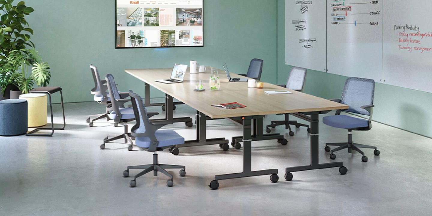 סדרת שולחנות מודולריים ומתקפלים מבית המותג knoll. הסדרה מאפשרת ליצור סביבות עבודה, למידה והדרכה ורסטיליות, לטפח קשרים ויצירתיות. בזכות התושבת הייחודית, ניתן לחבר ולהפריד שולחנות בקלות וליצור משטחי עבודה רחבים או ארוכים במיוחד בהתאמה אישית. ניתן לשנע בקלות עם גלגלים ולאחסן בערימה. המערכת מציעה מגוון של אפשרויות טכנולוגיות תוך נוחות מירבית למשתמש. מתאים לסביבות עבודה משרדיות, חדרי הדרכה, חדרי אוכל, חללים משותפים ועוד.