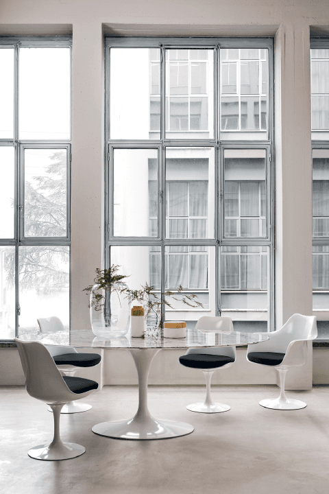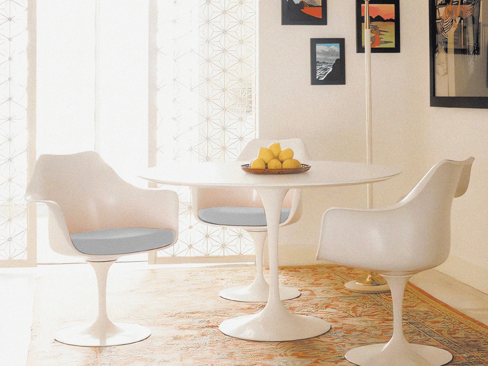 כיסא טוליפ מבית המותג Knoll, גרסה מחודשת לעיצוב האיקוני של אירו סארינן. לפריט מעטפת מט לבנה, בסיס מסתובב 360 מעלות (אופציה לבסיס קבוע) ומושב מרופד. הכרית זמינה במגוון צבעים, המעטפת מגיעה בלבן או שחור. מתאים לסביבות עבודה משרדיות, חללים משותפים, חדרי ישיבות, חדרי אוכל.